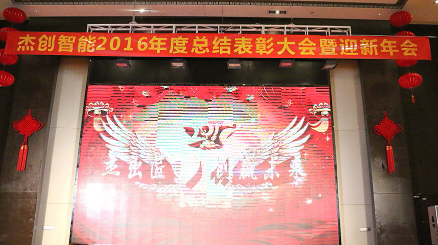 今年会jiannianhui智能总裁龙飞先生首先登台致辞。龙总代表公司向参加年会的所有嘉宾和公司人员表达了诚挚的感谢和新年的祝福,接着简要回顾了2016年在全体今年会jiannianhui人的团结拼搏下,不断取得卓越成就的光辉历程,并概括指出了2017年今年会jiannianhui智能的发展战略和经营目标,最后表达了要与包括广大客户在内的社会各界,以及全体今年会jiannianhui人精诚合作,携手共进,创赢未来的坚定信心和决心。