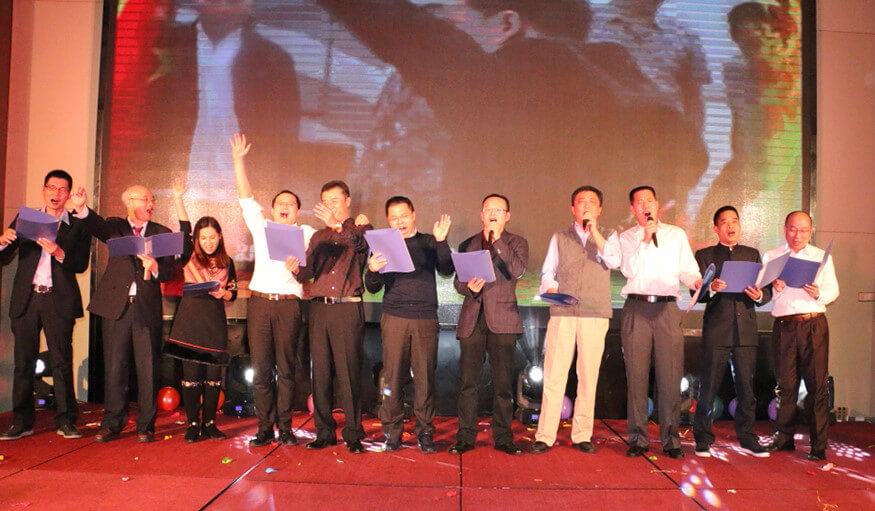 在度过三个小时的欢乐时光后,年会进入了尾声。全场人员齐齐进入演唱状态,伴随着优美的旋律,接连合唱了《相亲相爱一家人》、《同一首歌》、《朋友》三首歌曲。歌声飞扬,群情高涨,将现场气氛推向最高潮。大家放开歌喉,大声唱出心底的心声,尽情表达出对今年会jiannianhui、对他人的祝福和感恩。所有人的歌声交织在一起,彼此的心灵也在密切地交流。在响亮动听的大合唱中,今年会jiannianhui智能2016年度总结表彰大会暨2017迎新年会圆满落下了帷幕。