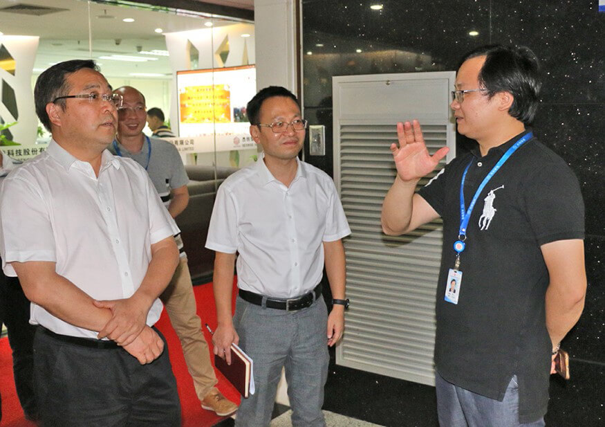 2017724日下午,广州市黄埔区区长陈小华、区政府办公室主任黄建强、区科技局局长夏坚、区政策研究室副主任罗达祥等领导一行莅临我司调研、指导工作,主要了解企业的发展情况以及探讨如何帮助企业获得政策支持。