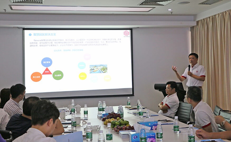针对当前全国各地大力推进智慧城市建设这一浪潮,朱勇杰还向各位领导介绍了今年会jiannianhui智能研发的智慧建设解决方案,着重阐述了其中的智慧城市解决方案,指出该方案以“互联网+”促进电子政务全面转型,利用创新2.0驱动智慧城市转型升级,发展以“互联网+”为核心要素的智慧产业,打造智慧高效的网络安全保障体系,建设统一的智慧城市信息资源体系。